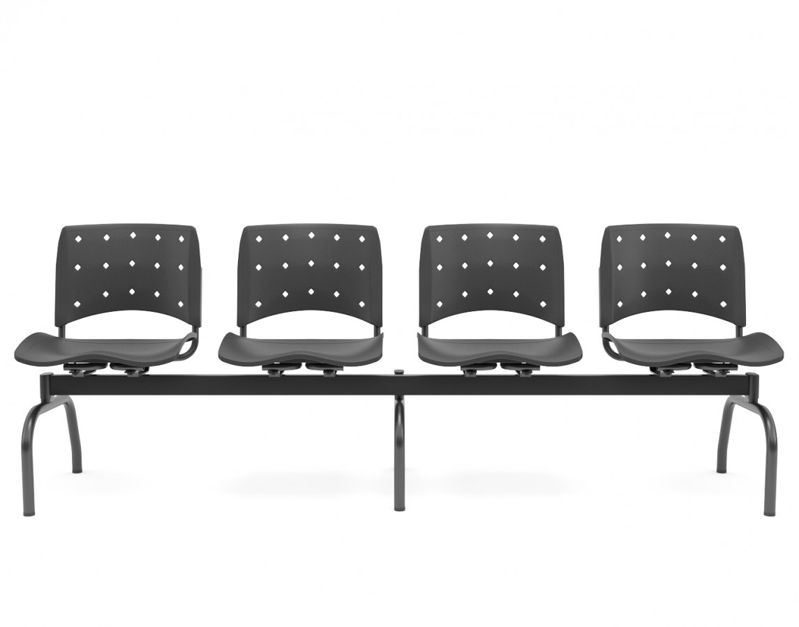 Longarina Ergoplax 04 lugares preta, assento sem estofamento