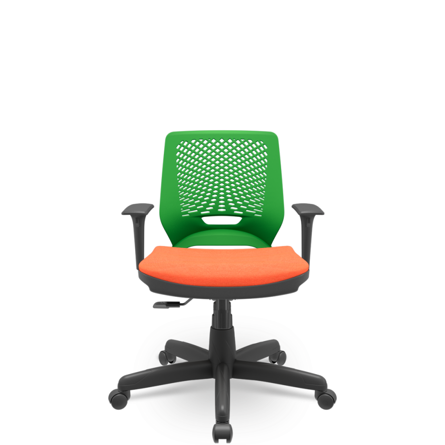 Cadeira Giratória Beezi Encosto Verde, Assento Laranja e Base Preta