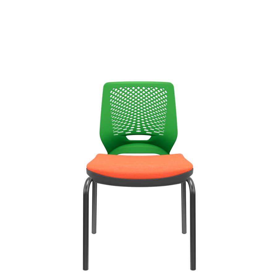 Cadeira Fixa Beezi Encosto Verde, Assento Laranja e Base Preta